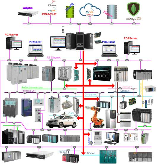 Industrial Ethernet, Profibus-DP, RFM and other network acquisition. Hardware interface module. PLC forwardly sends data, PDA server receives them. PDA server directly reads data from PLC. Data packet transmitted. 1.5