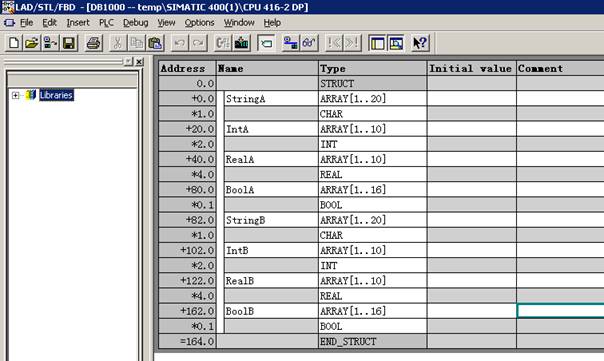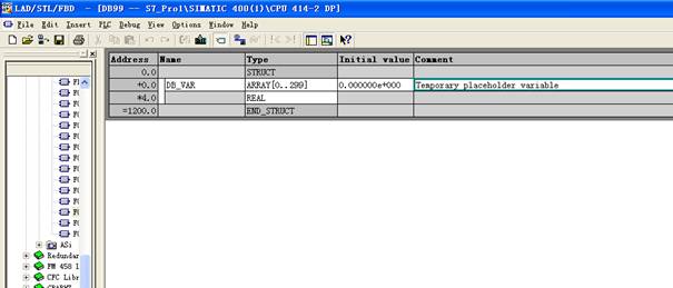 Define DB and assign values in PLC