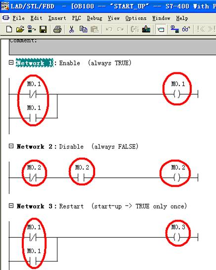 PDA program use 3 global BOOLs, M0.1, M0.2 and M0.3 are used in this example, DB1 is the data to be collected. OB100 procedures are as follows.