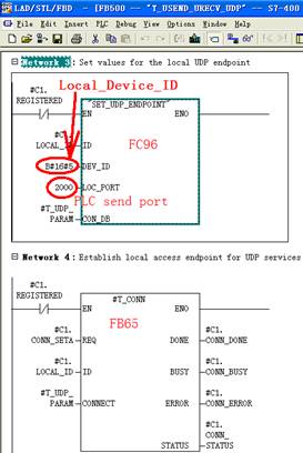 Udp protocol: S7-PLC directly send data block to PDA server by FC5 or FC50(>240bytes), the network configure is below, the other is same as section 4.3.
