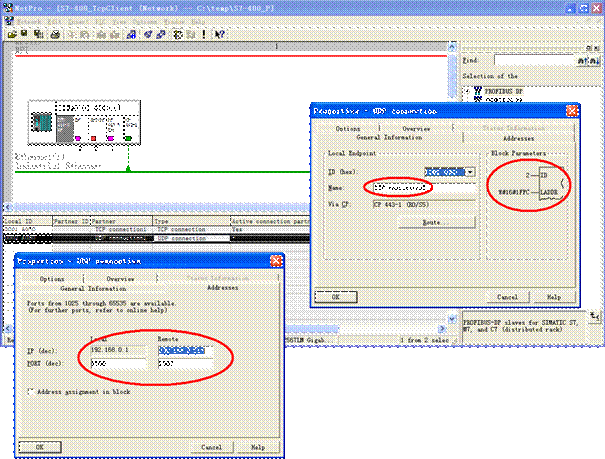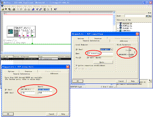 Tcp protocol: S7-PLC directly send data block to PDA server by FC5 or FC50 (>240bytes), S7-PLC acts as tcp client, the network configure is below, the other is same as section 4.4.