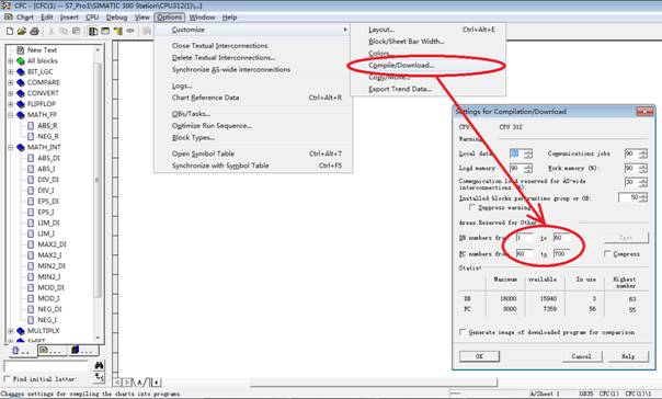11.7 CFC programming notesLAD programming is used by the PDA FC block, there will be a mixed programming of CFC and LAD if the user main program is CFC, S7-PLC supports this way, the PDA blocks effective range should be paid attention to, see below, otherwise they will be covered when CFCs are compiled or cause system conflict, More memory space is occupied because a large number of DB and FC are produced after CFC are compiled, to ensure CF card is sufficient to no compression program for download, otherwise "The interface of block has changed Please reimport" error will appear when you download CFC, you may decrease the PDA FC block number, it is priority to be downloaded to the CF card, the error may be not appeared, To replace CF card with large capacity is the fundamental solution.