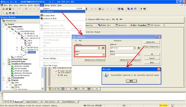 4. PLC->Standard Mode. 5. PLC->Set Address…Select USB to login PLC.