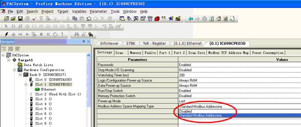 Modbus address space mapping should be done in GE PACSystems.