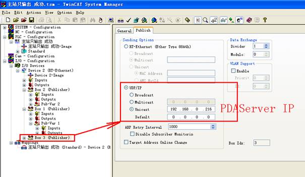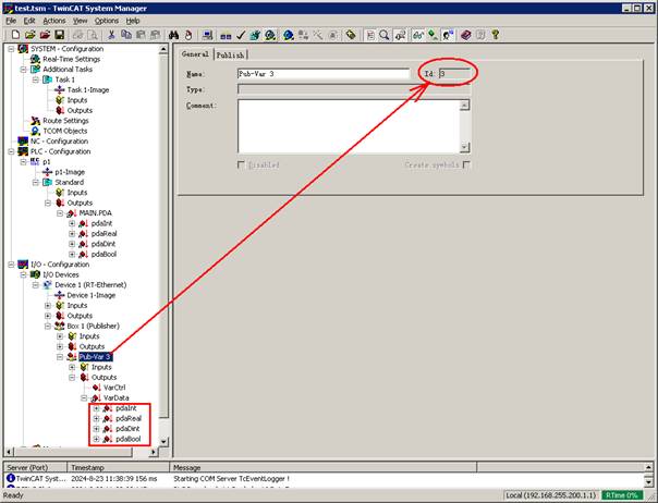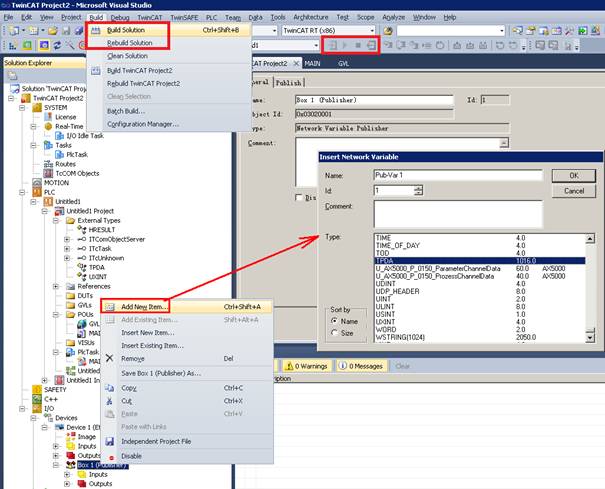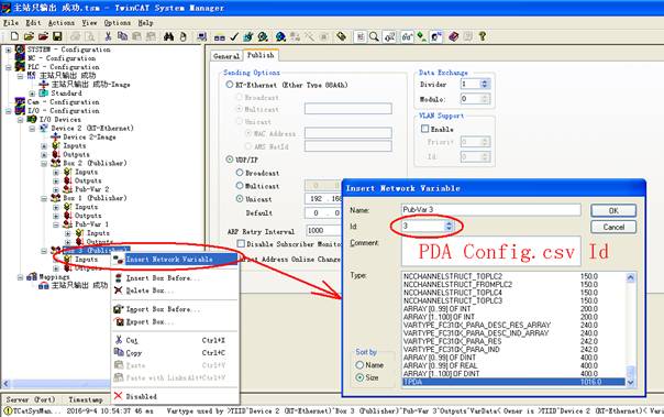 Add item Pub Var 1 and TPDA type network variables under Box.