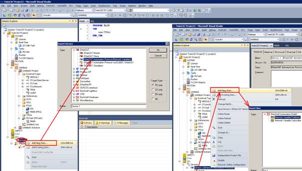 Establish a connection and select EtherCAT Automation Protocol [Network Variables] under the EtherCAT communication protocol.