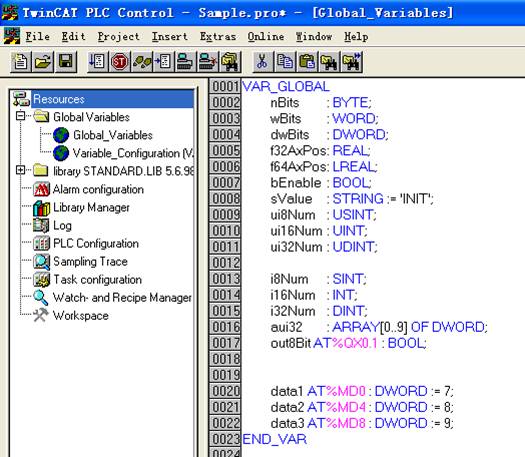The following figure is some variables defined in the PLC program.