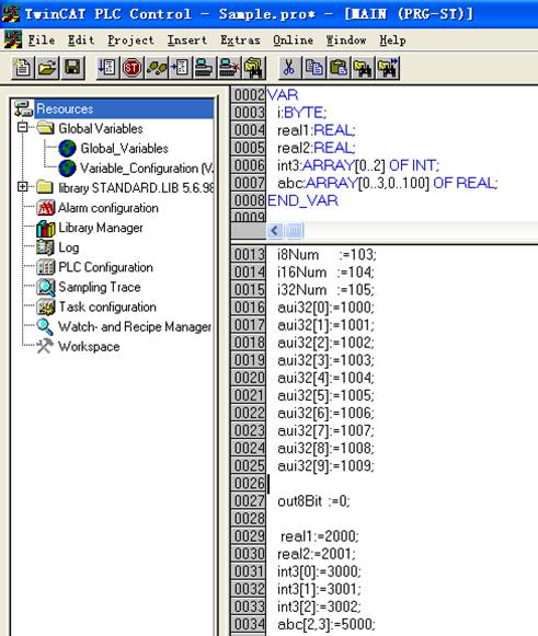 , ,2 ,0.000000,1.000000,INT ,0 ,0.000,0.000,0.000 CH12=,i8Num ,i8Num , ,1 ,0.000000,1.000000,SINT ,0 ,0.000,0.000,0.000 CH13=,i16Num ,i16Num , ,2 ,0.000000,1.000000,INT ,0 ,0.000,0.000,0.000 CH14=,i32Num ,i32Num , ,4 ,0.000000,1.000000,DINT ,0 ,0.000,0.000,0.000 CH15=,aui32[0] ,aui32[0] , ,4 ,0.000000,1.000000,DWORD ,0 ,0.000,0.000,0.000 CH16=,aui32[1] ,aui32[1] , ,4 ,0.000000,1.000000,DWORD ,0 ,0.000,0.000,0.000 CH17=,aui32[2] ,aui32[2] , ,4 ,0.000000,1.000000,DWORD ,0 ,0.000,0.000,0.000 CH18=,aui32[3] ,aui32[3] , ,4 ,0.000000,1.000000,DWORD ,0 ,0.000,0.000,0.000 CH19=,aui32[4] ,aui32[4] , ,4 ,0.000000,1.000000,DWORD ,0 ,0.000,0.000,0.000 CH20=,aui32[5] ,aui32[5] , ,4 ,0.000000,1.000000,DWORD ,0 ,0.000,0.000,0.000 CH21=,aui32[6] ,aui32[6] , ,4 ,0.000000,1.000000,DWORD ,0 ,0.000,0.000,0.000 CH22=,aui32[7] ,aui32[7] , ,4 ,0.000000,1.000000,DWORD ,0 ,0.000,0.000,0.000 CH23=,aui32[8] ,aui32[8] , ,4 ,0.000000,1.000000,DWORD ,0 ,0.000,0.000,0.000 CH24=,aui32[9] ,aui32[9] , ,4 ,0.000000,1.000000,DWORD ,0 ,0.000,0.000,0.000 CH25=,out8Bit ,out8Bit , ,1 ,0.000000,1.000000,BIT ,0 ,0.000,0.000,0.000 CH26=, ,