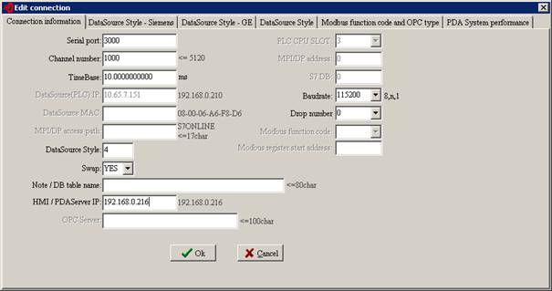 The PDA data source type is 4, bytes need to be swapped, the below PLC memory area may be collected, SM(BOOL), SD, X*(BOOL HEX), Y*(BOOL HEX), M*(BOOL), L*(BOOL), F*(BOOL), V*(BOOL), B*(BOOL HEX), D*, W*(HEX), TS(BOOL), TC, TN, SS(BOOL), SC(BOOL), SN, CS(BOOL), CC(BOOL), CN, SB(BOOL HEX), SW(HEX), S*(BOOL), DX(BOOL HEX), DY(BOOL HEX), Z*, R*, ZR(HEX).
