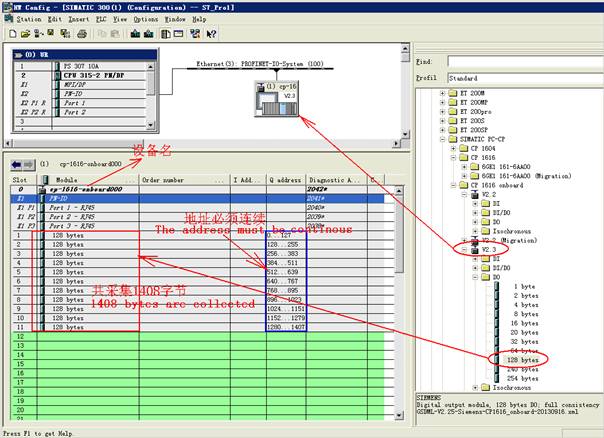 Figure 1 Countries and Regions Supporting Profinet Fieldbus The standard version PDA system configure Profinet slave station according to the onboard V2.3 CP-1616, The number of bytes collected is a multiple of 128, each slave collects up to 128*11=1408 bytes, see the following figure, more data may be collected by increasing more profinet slave station. Profinet ultimately transmits data based on MAC addresses, so different slave stations on the same PN port generally require different network cards to correspond to them in PDA servers, which support multiple network cards. A PDA server assigns multiple IP addresses to an Ethernet adapter, with each connection assigned a different FrameID. Multiple PN connection channels can be established between a PLC Ethernet adapter and a PDA server Ethernet adapter. Ask for example if you need. PDA CPU 315-2 PN_DP Profinet CP1616 onboard V2.3 1408bytes.rar PDA CPU 319-3 PN_DP Profinet CP1616 onboard V2.3 1152+1408 Bytes.rar PDA CPU 414-2 DP Profinet CP1616 onboard V2.3 1408+1408Bytes.rar S7 CPU with PN port outputs 1408 bytes within 1ms, The alone Profinet network card outputs 1408 bytes will takes 7ms because data go through the back board bus. 5.1 PDA