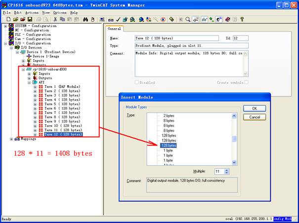 5.5 Supported PLCThey are PLCs Profinet master station being supported such as Beckhoff, S7-300/400, S7-1500, ABB, or other smart devices. Please ask for CP1616 driver GSDML-V2.25-Siemens-CP1616_onboard-20130916.xml if needed. CP1616 configuration as slave station in Beckhoff PLC is as follows: