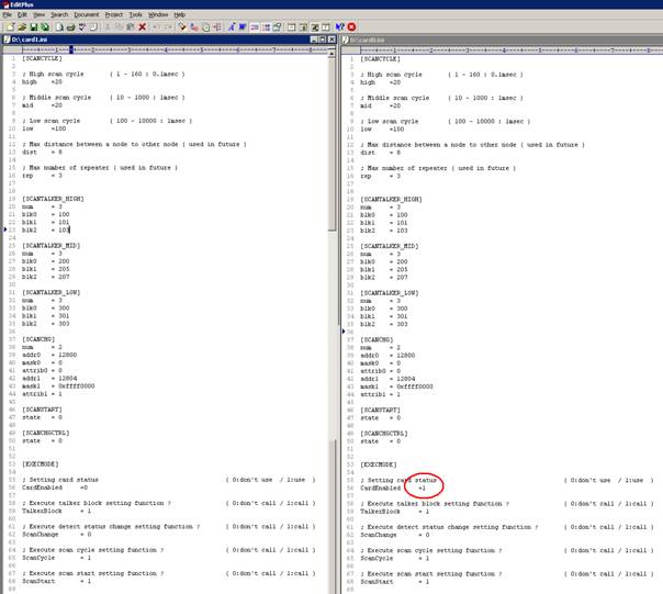 The configuration files for the two cards are shown in the following figure: