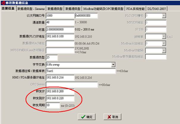 This task is executed by PDAServer.exe, it may achieve millisecond level forwarding. The PDA server adds a multi port network card. In principle, the data required by other systems is not directly connected to the L1 controller, but is obtained through PDA forwarding. Different network segments are forwarded through different network ports, which can save a lot of PLC resources. The first forwarding method is set through Config.csv, as shown in the figure below, with the forwarding IP, forwarding destination IP, and forwarding cycle set. This method can only forward to one place.