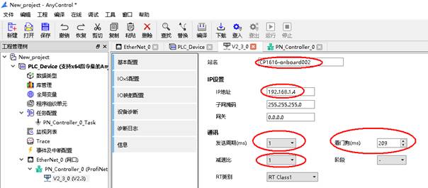Add CP-1616 slave station, set the slave station IP and station name, set the 1ms transmission cycle as follows, and set the watchdog value as large as possible.