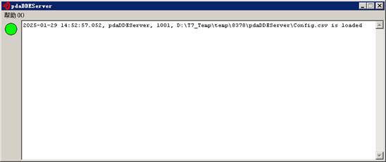 pdaDDEServer.exe writes the real-time value of each channel into the DDE item, with each connection corresponding to a topic and each point corresponding to an item. Method 1: Copy pdaDDEServer.exe into the PDA server directory at D:\PDA, then on the client side, open the shared directory of the PDA server at D:\PDA and run pdaDDEServer.exe. Method 2: Map the shared directory of the PDA server located at D:\PDA to the client's W: drive, and run the client's pdaDDEServer.exe, the method is recommended for use. The operation interface of pdaDDEServer.exe is as follows: