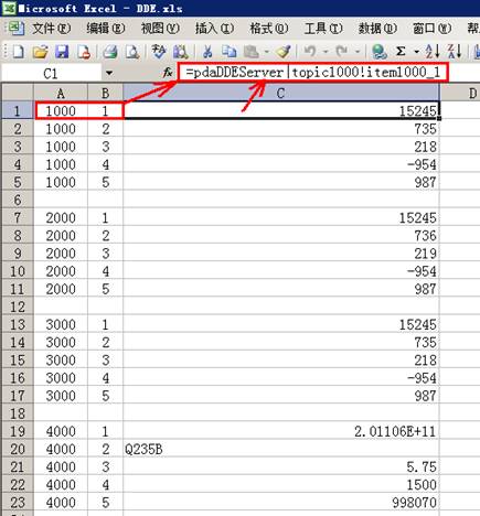 Open Excel on the client side, fill in the corresponding item, and the real-time value will be displayed, as shown in the figure below.