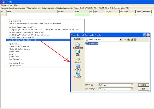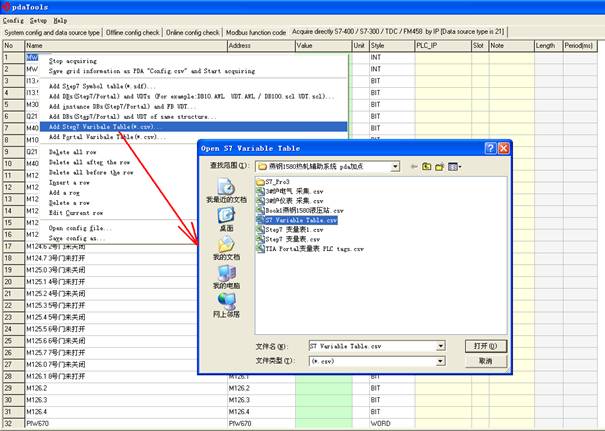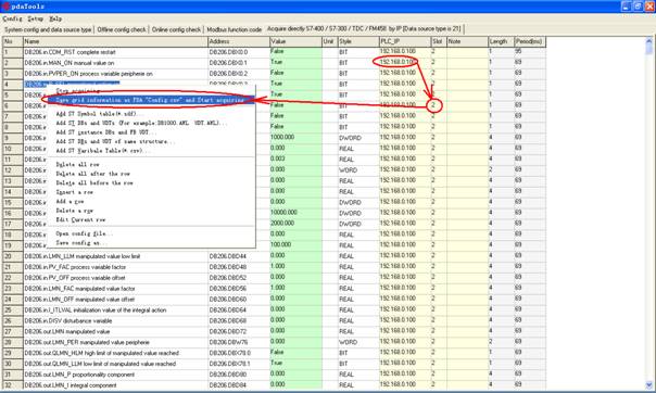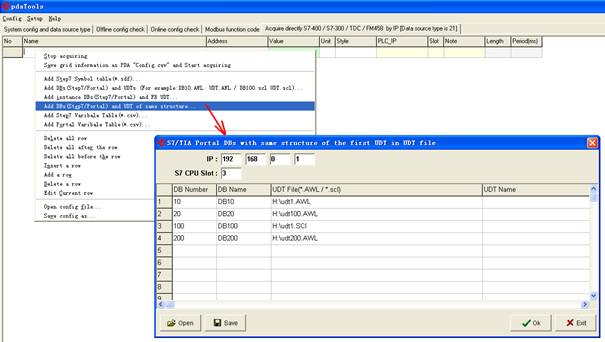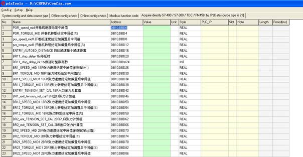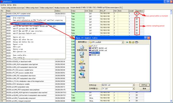 Run pdaTools.exe to open I:\Book1.csv, fill in PLC’s IP and CPU’s slot, you may start reading PLC ontime data, Variable information may be modified in grid, Sampling period is at column Period(ms). The first row is max period for some time, You may also save the config into PDAServer, it will collect PLC’s data together.