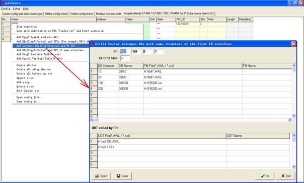 8.2 Online Step7/Portal multi-DB and Measure sampling periodGenerate source for STEP7 DB and export source as AWL file, DB number is file name, for example I:\DB303.AWL. Export a DB to a AWL file, all UDT to UDT.AWL.