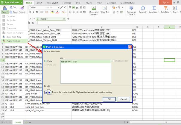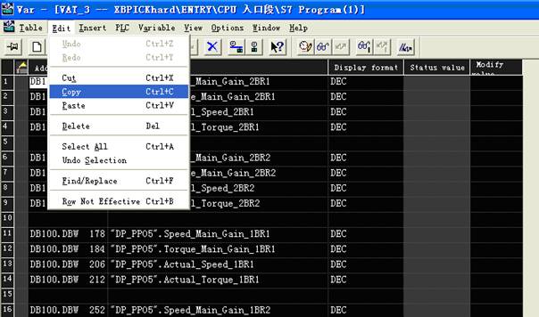 Copy STEP7 variable table and paste to Excel with text style, save as csv format file, for example I:\Book1.csv.