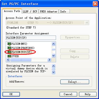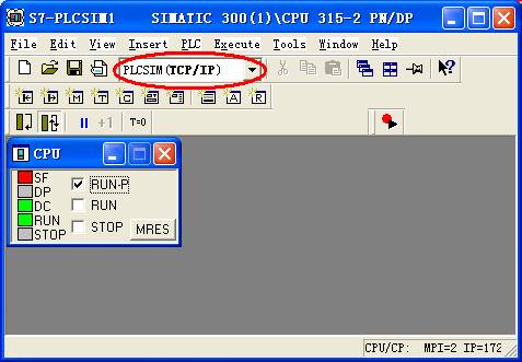 (5) Run PLCSIM, PLCSIM(TCP/IP) is selected for PLCSim.