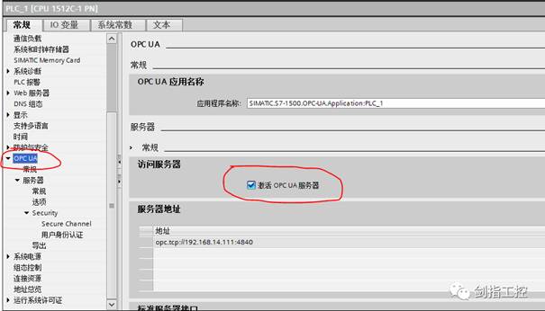 Security) 的不同方面, 但在其基础之上进行了功能扩展。 OPC UA是在传统OPC技术取得很大成功之后的又一个突破,让数据采集、信息模型化以及工厂底层与企业层面之间的通讯更加安全、可靠。 OPC UA的几大优势: (1)与平台无关,可在任何操作系统上运行 (2)为未来的先进系统做好准备,与保留系统继续兼容 (3)配置和维护更加方便 (4)基于服务的技术 (5)可见性增加 (6)通信范围更广 (7)通信性能提高 在工业4.0时代,企业级信息网络与工业自动化系统的沟通有着举足轻重的重要性,OPC UA的灵活性及开放性将使它发挥更大的作用,未来OPC UA在企业中通讯也必将被越来越多的人采用。 OPC UA通信是跨平台的、具有更高的安全性和可靠性,满足了企业信息高度连通的需求。 S7-1500从V2.0开始支持作为OPC UA服务器的功能。 激活OPC UA服务器功能:打开CPU的OPC UA选项,勾选激活OPC