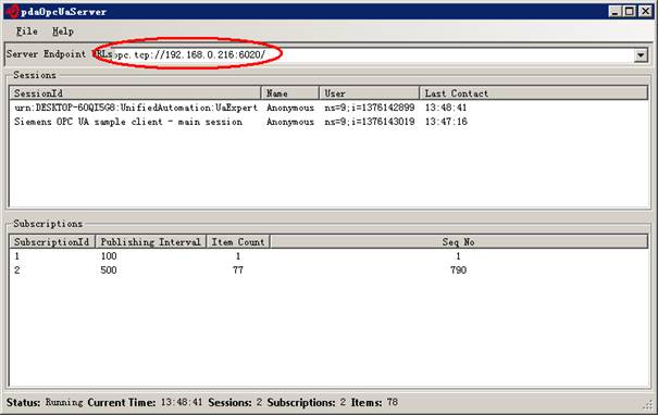 PDAWatchDog会自动启动pdaOpcUaServerA.exe,也可手动运行pdaOpcUaServerA.exe,启动后的界面如下图。