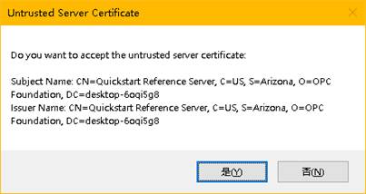如果不安装证书或安装公有证书,客户端连接时会提示非信任的服务器证书,如下图,“Y”后不影响数据访问。