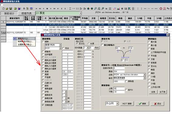 The search range and statistical output value of the steel coil can be selected according to the following figure, and each steel can be divided into a maximum of 21 slices.