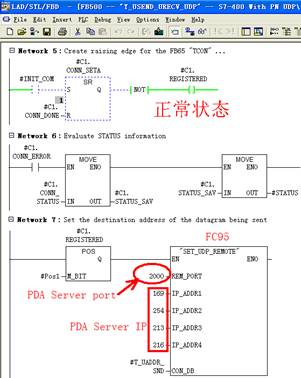 Udp protocol: S7-PLC directly send data block to PDA server by FC5 or FC50(>240bytes), the network configure is below, the other is same as section 4.3.