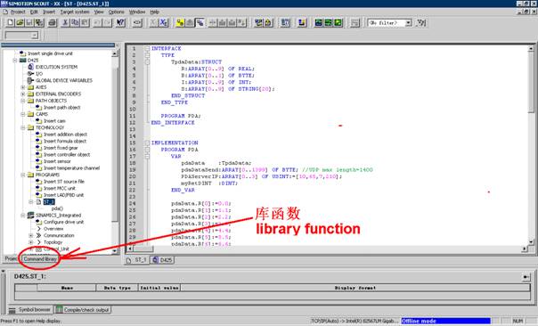 Adding program ST_1.pda to low priority task such as BackgroundTask, the fastest period can be set to one servo cycle, it is also available to other task such as ServoSynchronousTask, but it is easy to cause Simotion D to stop when the sending cycle is too short, it may be avoided by calling the error program.