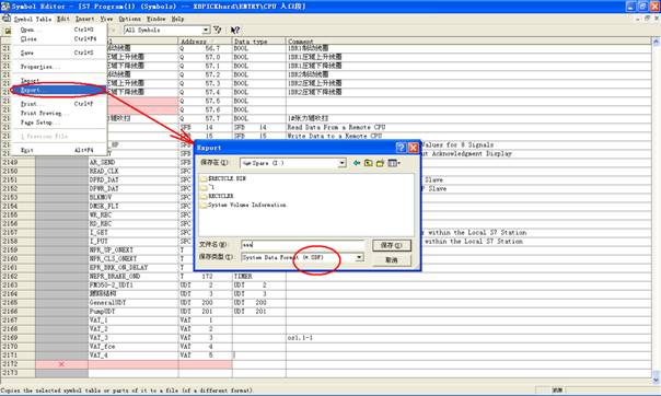 Export STEP7 symbol table as sdf file, for example I:\aaa.sdf.